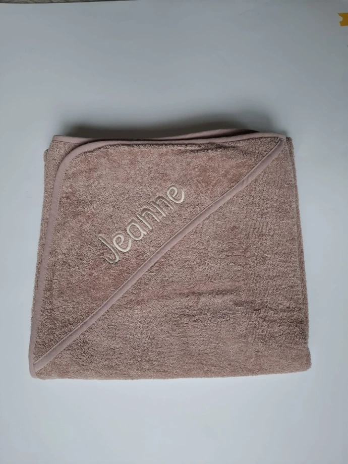De kids badcape met naam is gemaakt van 100% katoen en voelt zacht aan op de huid. De stof neemt goed vocht op en droogt snel. De naam wordt met zorg geborduurd en blijft mooi, ook na veel wasbeurten. Verkrijgbaar in twee formaten, 80x80 cm voor de kleinsten en 100x100 cm voor grotere kids. Zo groeit de badcape perfect mee met je kind.